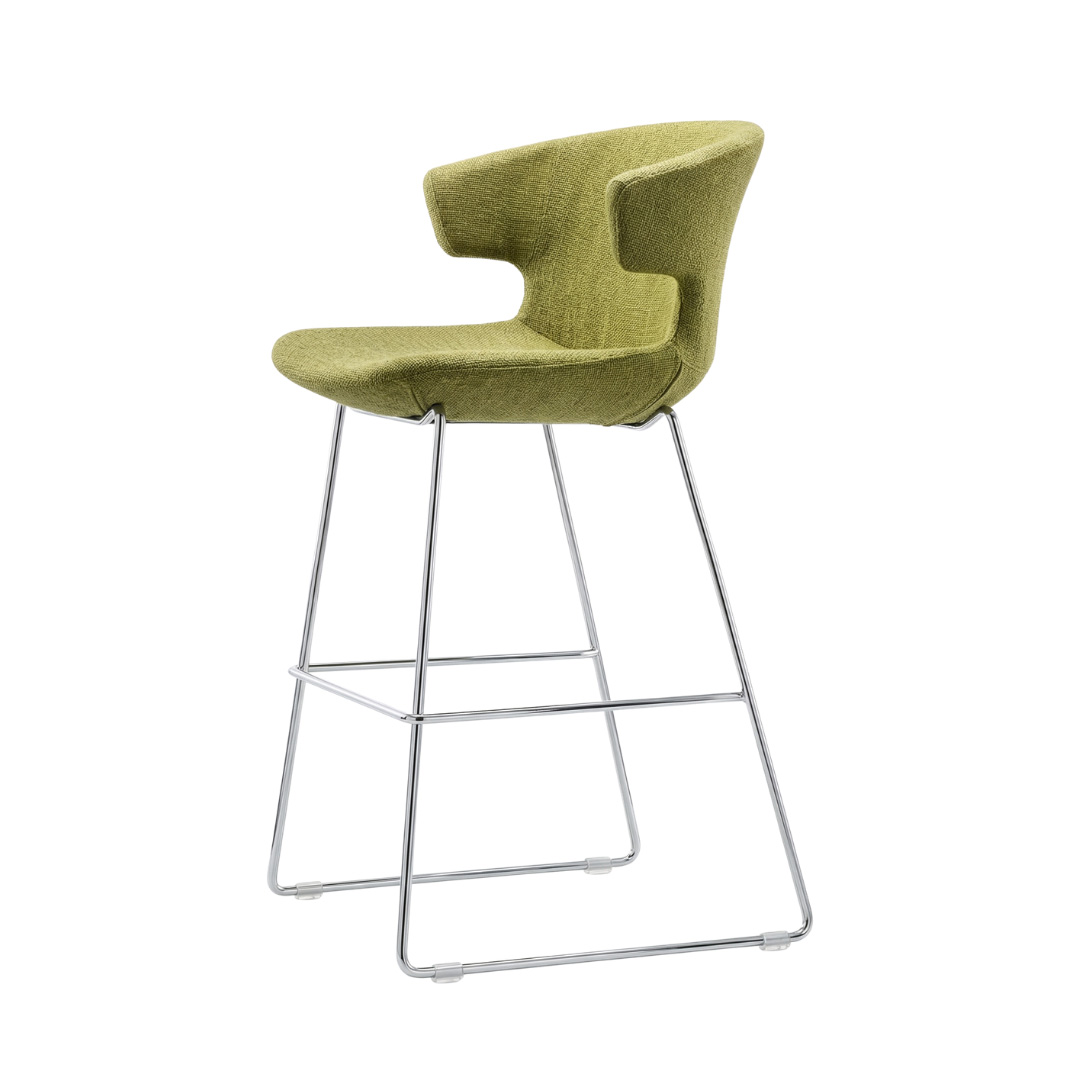 Contemporary design meets elevated comfort. This modern fabric bar chair is a sophisticated seating solution designed for high-counter environments, breakfast bars, or collaborative office spaces.